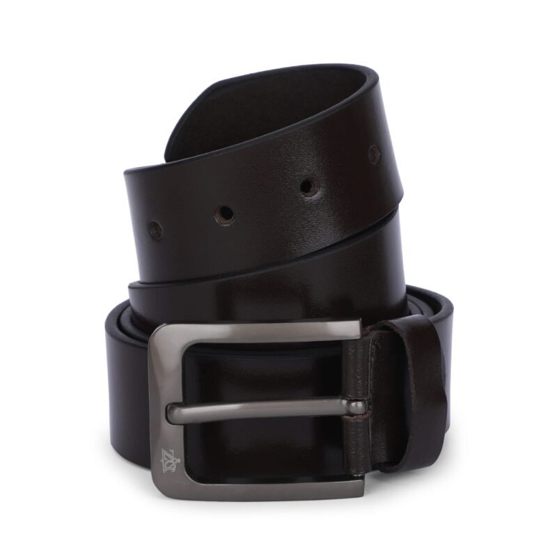 Mens brown genuine leather belt with silver finished buckle